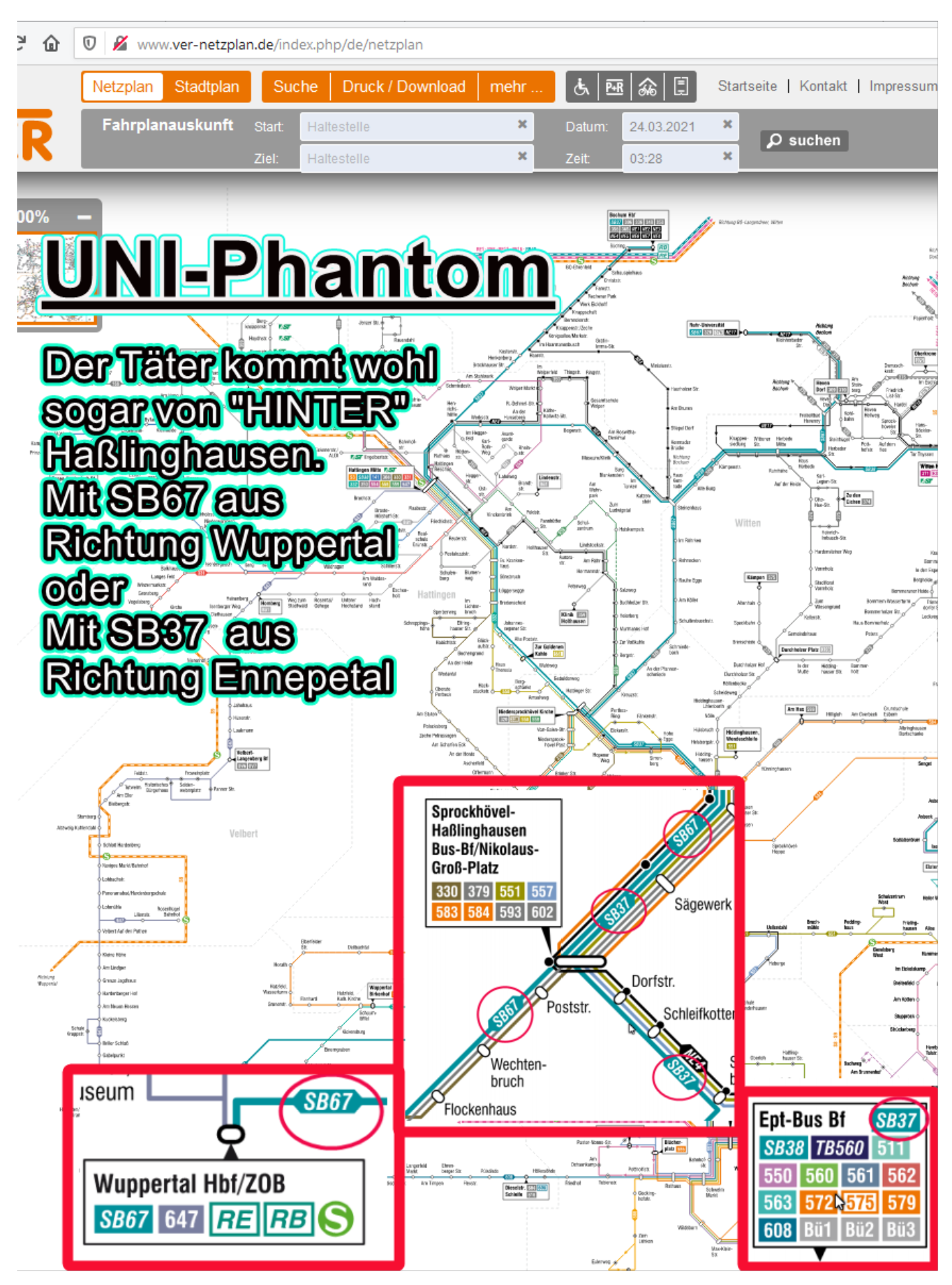 21/03/2021 - Uni-Phantom: JEDE Tat ab Bus-Bhf. Haßlinghausen, Busse 583/SB67/SB37/551/379, 1.Tat 07.01.94 beim Papiere holen nach Kündigung 12/1993 in Ind.-Geb. Bossel (583), Bestrafungs-Sex in “Feindesland”
